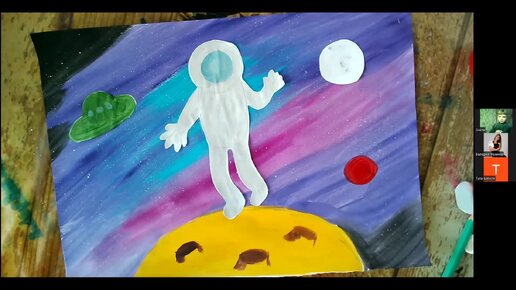 КОСМОС.гуашь.8апреля25г.Рисуем с Лерой
