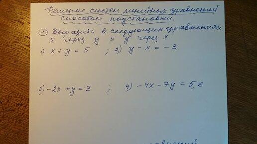 Алгебра 7 класс. Решение систем линейных уравнений способом подстановки.