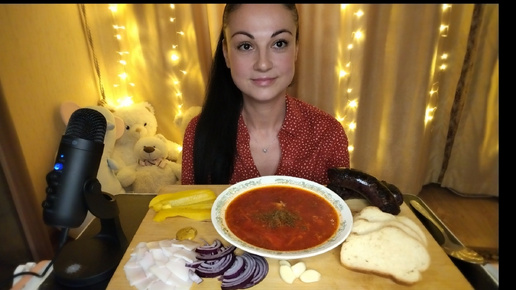 Мукбанг🍲Борщ, сало, кровянка, чеснок 🧄🥓🤤