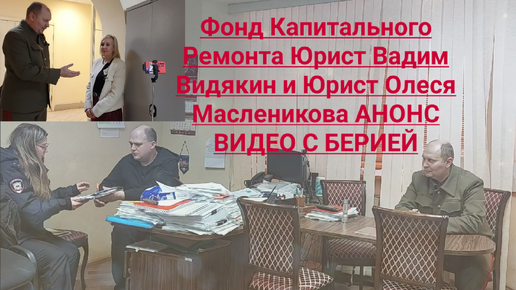 Фонд Капитального Ремонта Юрист Вадим Видякин и Юрист Олеся Масленикова АНОНС ВИДЕО С БЕРИЕЙ