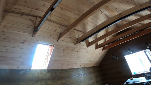 Готово! Обшила потолок в мастерской! Самое трудное место, но станки помогли справиться.