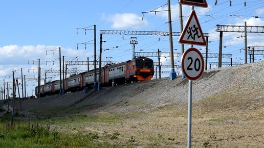 Электропоезд ЭД9М-0247 с приветливой бригадой.