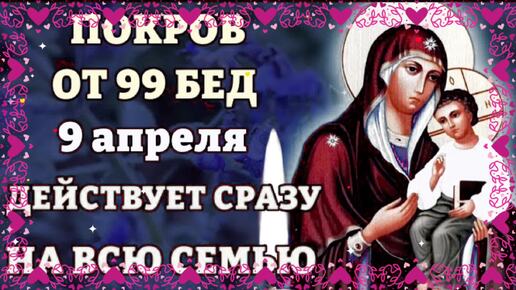 9 Апреля ЭТА МОЛИТВА ДЕЙСТВУЕТ СРАЗУ! ПОКРОВ ОТ 99 БЕД! Молитва Богородице Песчанская. Православие🙏ДЗЕН