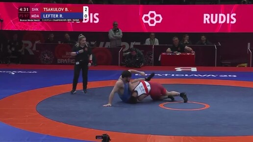 Батырбек Цакулов «раскатал» соперника из Молдовы на чемпионате Европы по вольной борьбе