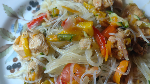 Полезно, вкусно. А-ля китайское блюдо "Фунчоза с куриным мясом и тушеными овощами "