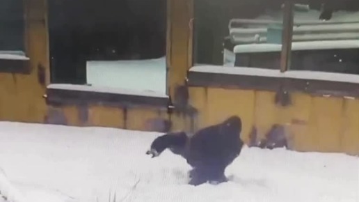 Горилла танцует нижний брейк и радуется снегу