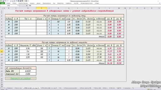 Расчет потери напряжения через момент нагрузки
