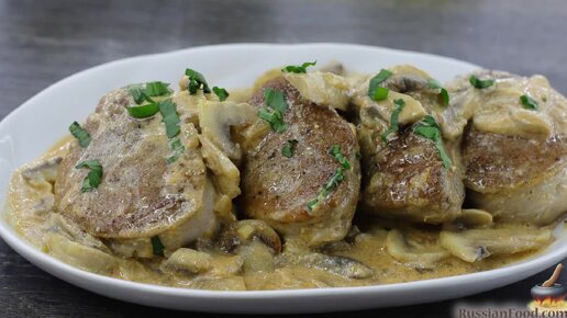 Лёгкость приготовления и изысканный вкус. Медальоны в сливочно-грибном соусе
