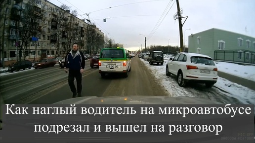 Как наглый водитель на микроавтобусе подрезал и вышел на разговор