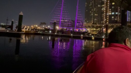 Наблюдаем знаменитое световое шоу Бурдж-Халифы с лодочки, плывущей от Крик Харбора (Дубай)))