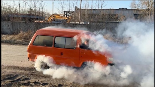 Полноценный выезд.Бусик жгет резину.Бернаут.