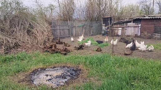 Куры довольные. Разобрали навес. Погуляли по парку. Жизнь на пенсии.