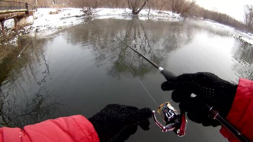 Зимний спиннинг на Исети в парке Маяковского в условиях суровой уральской зимы. Поймал только одного язя, и тот случайно зацепился