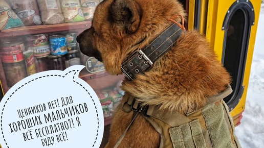 Пёс Кубик спасал маленький жёлтый магазин на колёсах из снежного плена. А то кто привезёт рыбов?!