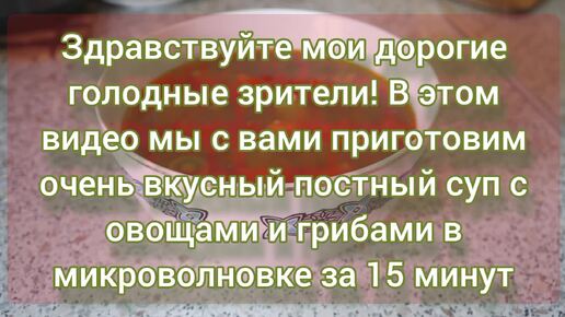 Готовим вкусный постный суп с овощами, грибами и красным имбирём в микроволновке за 15 минут
