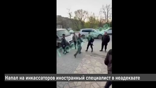 Не могли отбиться палками инкассаторы от кидающегося на них бешеного иностранца