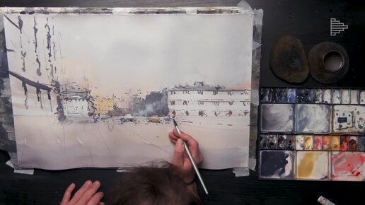 Рисование акварелью. Городской пейзаж рисует художник Юрий Акопянц. Москва импрессиониста