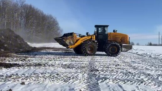 Строительная техника фронтальный погрузчик LONKING в работе при низких температурах