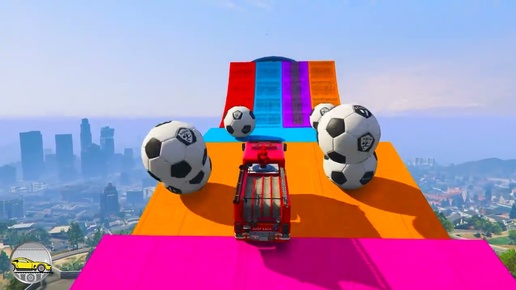 SPIDERMAN Vs HULK McQueen CARS Mega MULTI Ramp ! SUPERHEROES Mack Truck Miss FRITTER Race GTA V