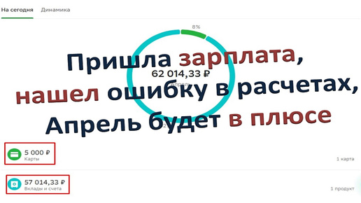 Пришла зарплата, нашел ошибку в расчетах, апрель будет в плюсе