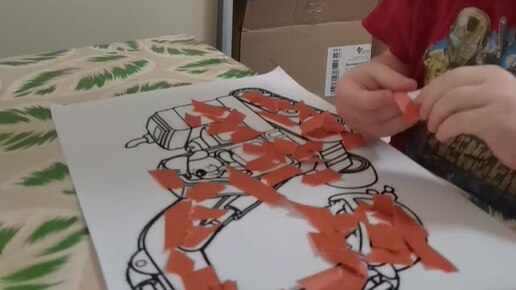 2,3г. Обрывная аппликация "Экскаватор". Поделки в ясельной группе.