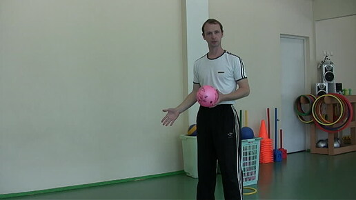Прыжок через мяч ноги врозь (после отскока мяча от стены)