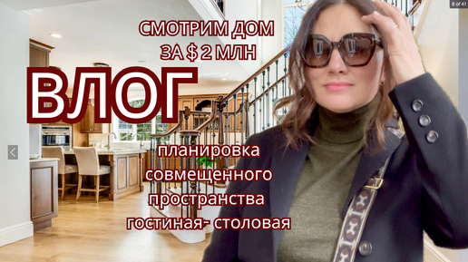 ВЛОГ. СМОТРИМ ДОМ ЗА $ 2 МЛН. ПЛАНИРОВКА СОВМЕЩЕННОГО ПРОСТРАНСТВА - ГОСТИНАЯ- СТОЛОВАЯ