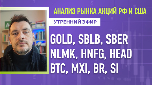 Анализ рынка акций РФ и США/ GOLD, SBLB, SBER, NLMK, HNFG, HEAD/ BTC, MXI, BR, SI