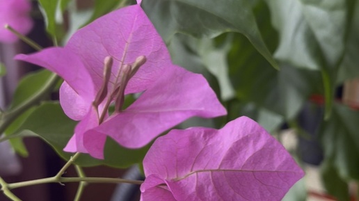 Рассматриваю прицветники у Бугенвиллии. Цветение уже длится месяц.