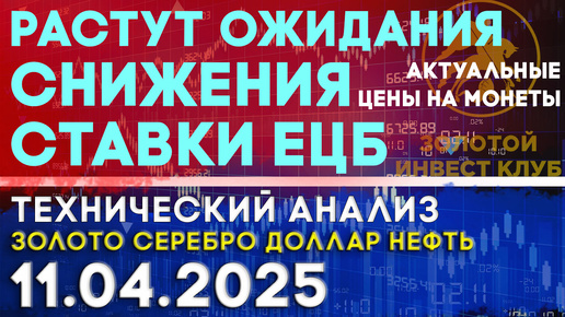 Растут ожидания снижения ставки ЕЦБ. Анализ рынка золота, серебра, нефти, доллара 11.04.2025