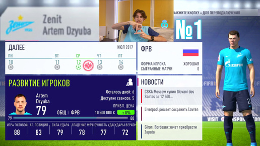 FIFA18 Карьера за Артёма Дзюбу! ГЕЙМПЛЕЙ №1. Хорошее начало предсезонки за 22 номер Зенита!