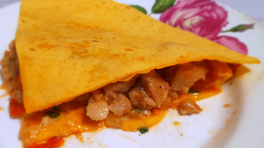 Простая и очень вкусная закуска на скорую руку - кесадилья со свининой, сыром и сыром.