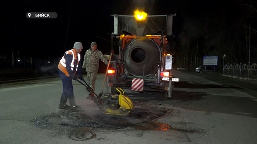 Ремонт дорог в Бийске начали проводить по ночам (Бийское телевидение)