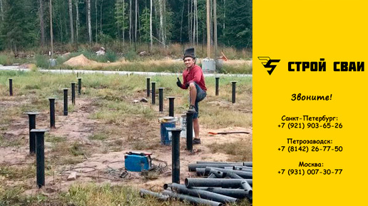 Закрутка винтовых свай с удлинителями под коттедж в пос Бурнево
