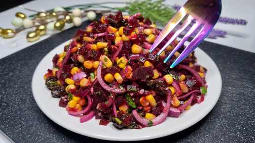 Новый Рецепт. Съедят за минуту! Беру Свеклу и банку Кукурузы! Готовлю Самый вкусный салат из свеклы за 5 минут!