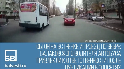 Обгон на встречке и проезд по зебре: балаковского водителя автобуса привлекли к ответственности после публикации в соцсетях