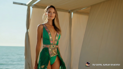 Показ модных купальников нового сезона от нейросети. В изумрудных тонах
