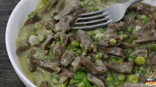 Вариация на тему бефстроганов. Сердечки в сметане с горошком