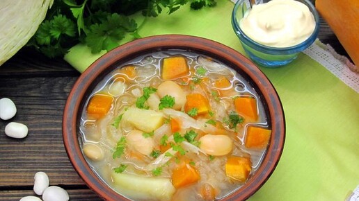 Интересные и яркие. Щи с тыквой и фасолью