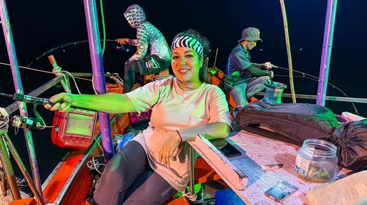 ТАИЛАНД! Ночная РАБОТА! Одна в море с мужиками — ловим ГИГАНТСКИХ КАЛЬМАРОВ!