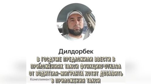 В Госдуме предложили ввести в приложениях такси функцию отказа от водителя-мигранта хотят добавить в приложения такси