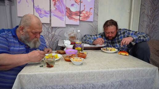Ужин рядом с папой и продолжаю делать маленькое окно для выгула кошек на улицу ПОДВАЛ ИЛЬИЧА жизнь в селе