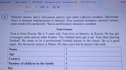 Анкета Как выполнить письменное задание по тексту с запрашиваемой информацией