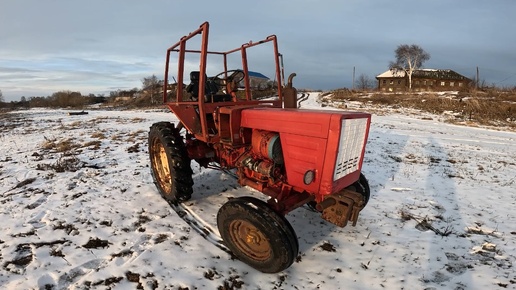 Трактор Т-25А первый запуск после зимы.Проверяю блокировку, буксую в снегу!