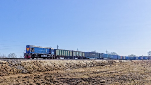 Далее: Тепловозы ТГМ6В-0008 и ТГМ6А-2456 на манёврах с контейнерным поездом.
