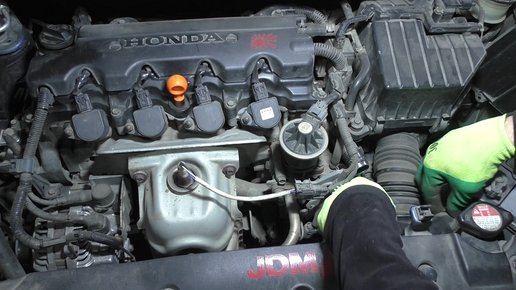 Замена термостата двигателя и датчика давления масла на Honda Civic 1,8 Хонда Цивик 2008