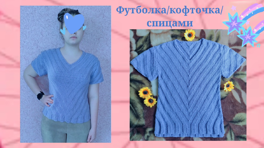 Кофточка из 200 гр.пряжи!!🌸Кофточка/футболка/ спицами на 40 размер со спущенным плечом теневым узором из классной летней пряжи🌸Обзор🌸