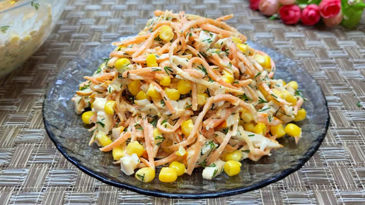 Съедят за минуту! Вкуснейший салат из простых продуктов за 5 минут на каждый день и на праздник. Готовится быстро , съедается еще быстрее.