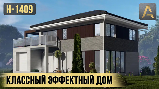 Эффектный дом в современном стиле. Проект двухэтажного дома с гаражом, террасой и панорамными окнами