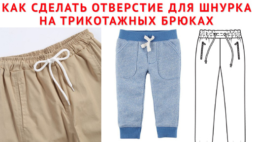 как сделать отверстие для шнурка на трикотажных брюках обычной прямой строчкой. без пробивки петли